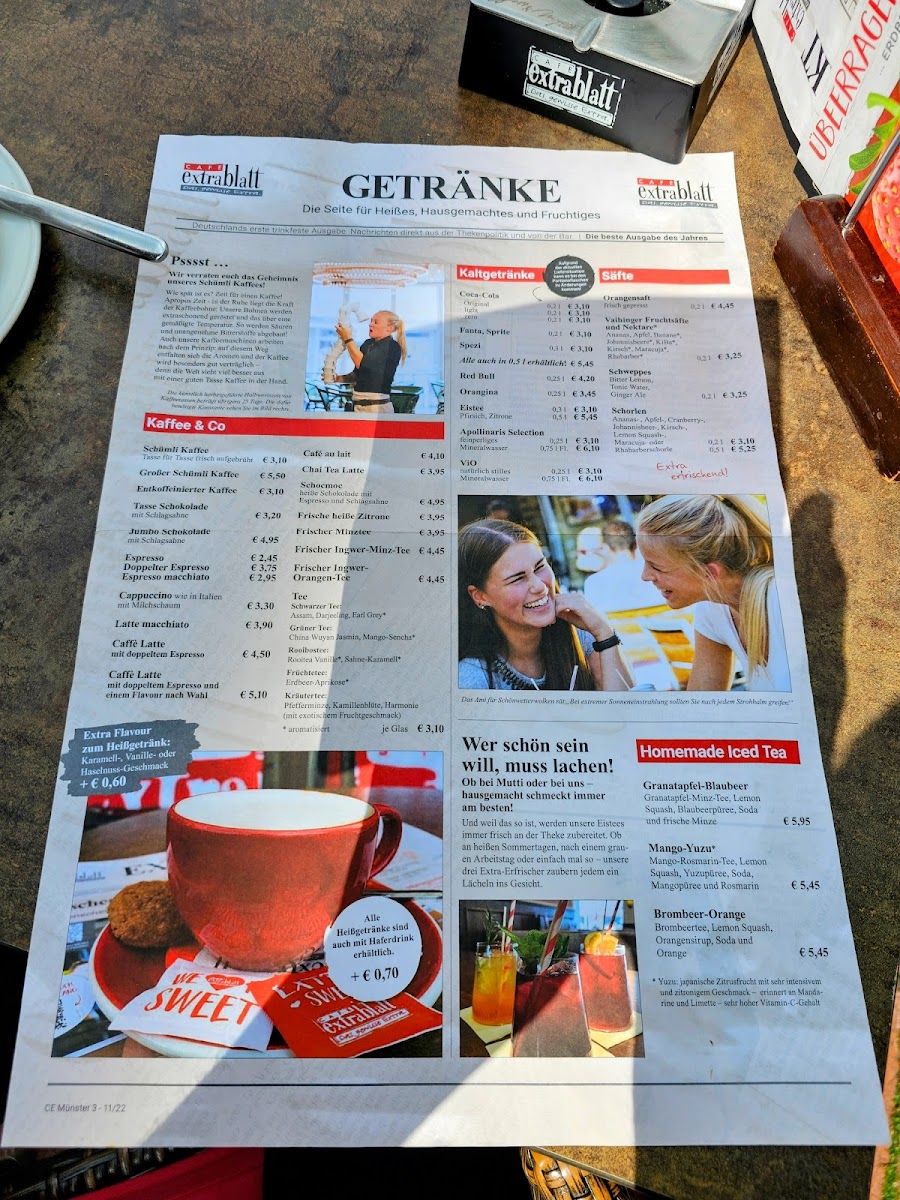 Welcome to Cafe Extrablatt Munster Aegidiimarkt, a delightful haven nestled in the heart of Münster at Aegidiimarkt 1, 48143. This charming establishment perfectly melds the classic cafe atmosphere with the vibrant energy of a bustling pub, making it a beloved spot for locals and tourists alike.